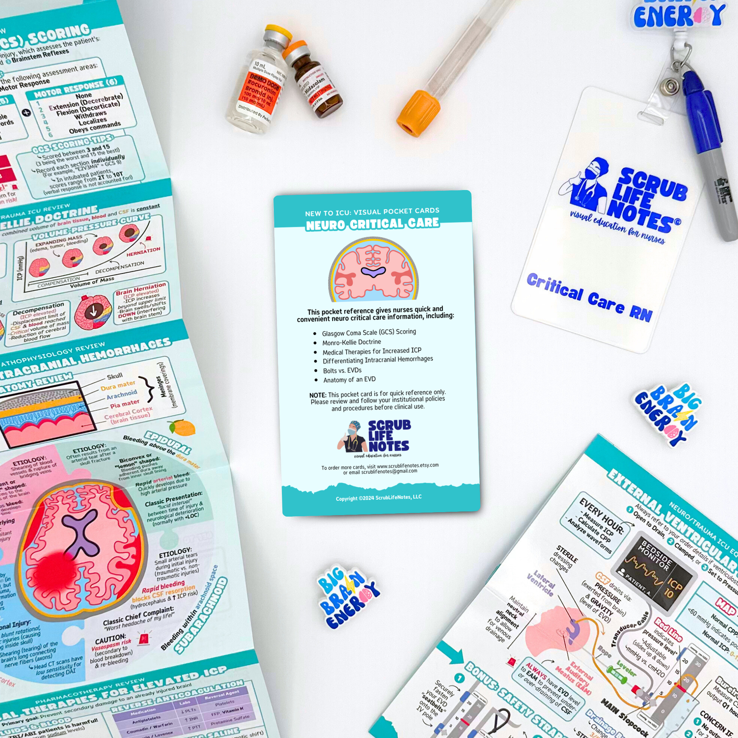 I began creating these study resources in 2018 as a new graduate ICU nurse. These one-pagers were my lifeline during my first year, helping me grasp complex critical care topics and equipment in a way that I learned best: visual education!