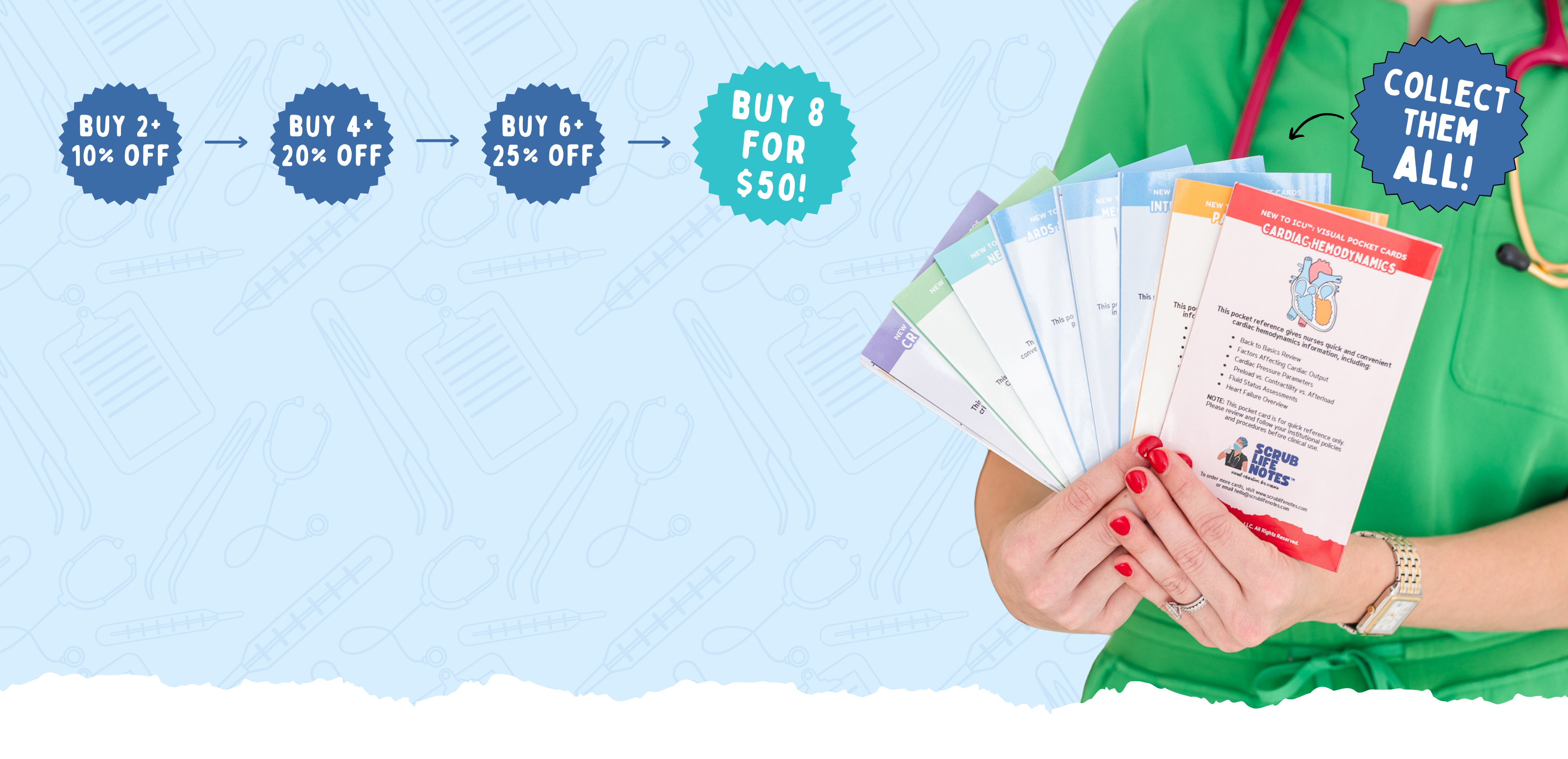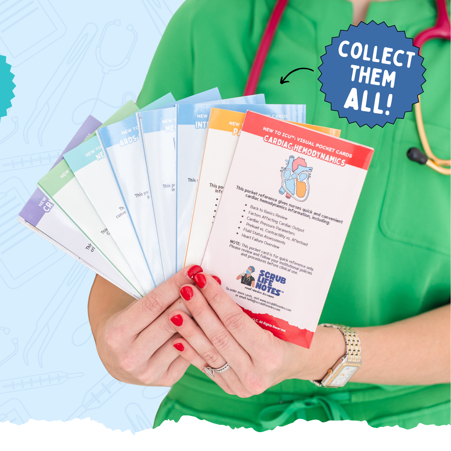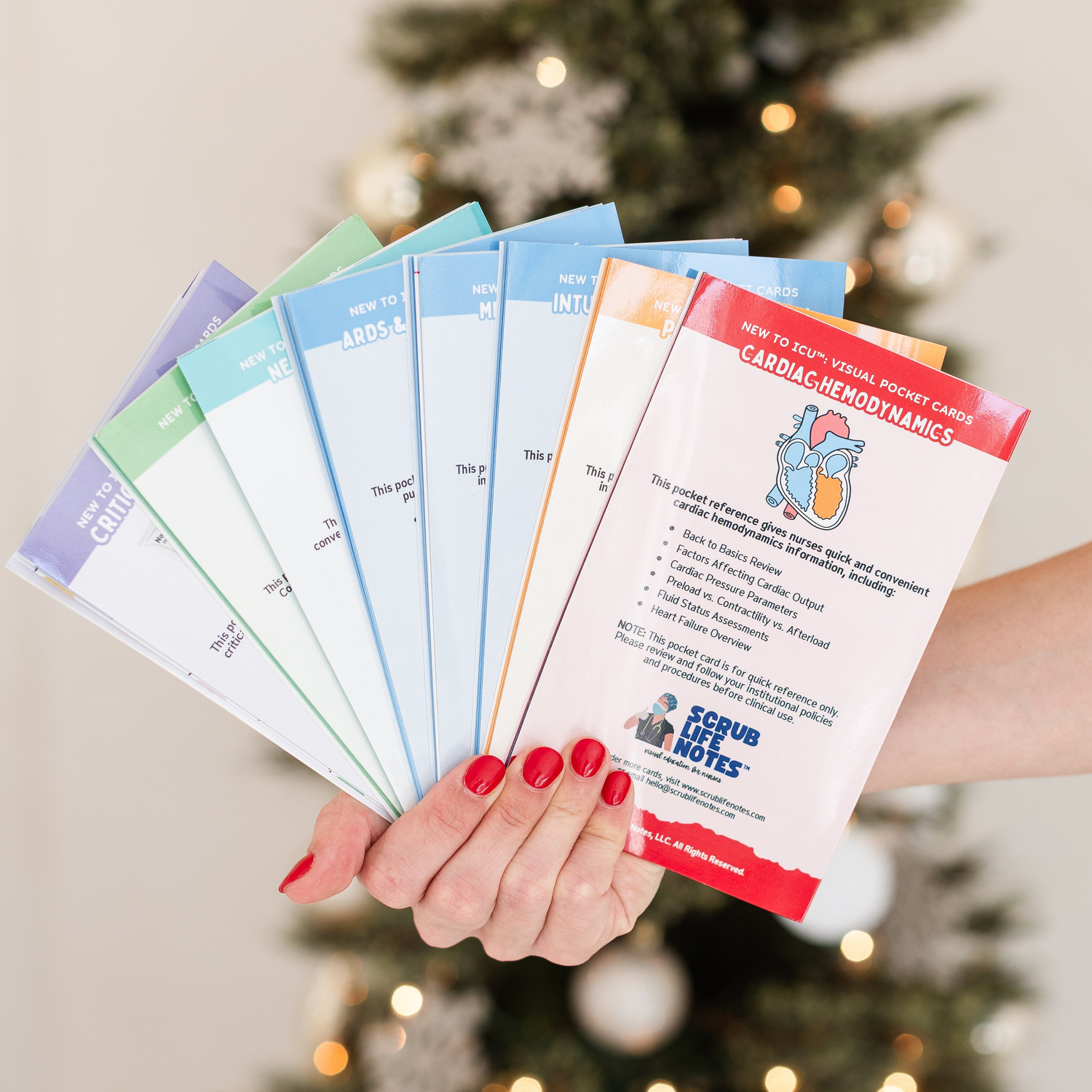 Our best-selling set of four New to ICU® Pocket Cards—perfect for new grads, clinical rotations, and preceptor gifts.